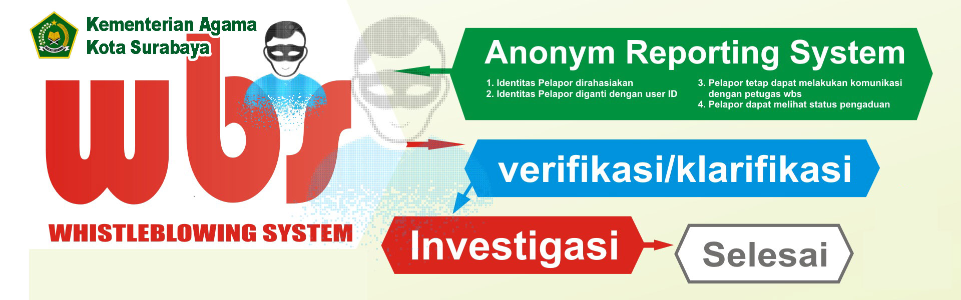 Whistleblowing System (WBS) merupakan sarana untuk meningkatkan kepercayaan masyarakat kepada pelayanan di lingkungan MIN 2 Kota Surabaya